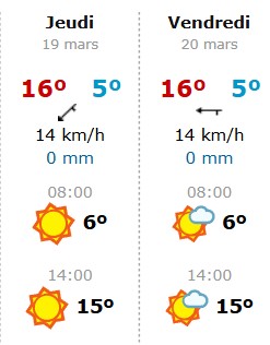 Voici à droite une petite idée de la météo qui nous attend à Paris (prévision sans garantie... mais qui sera actualisée chaque jour.)